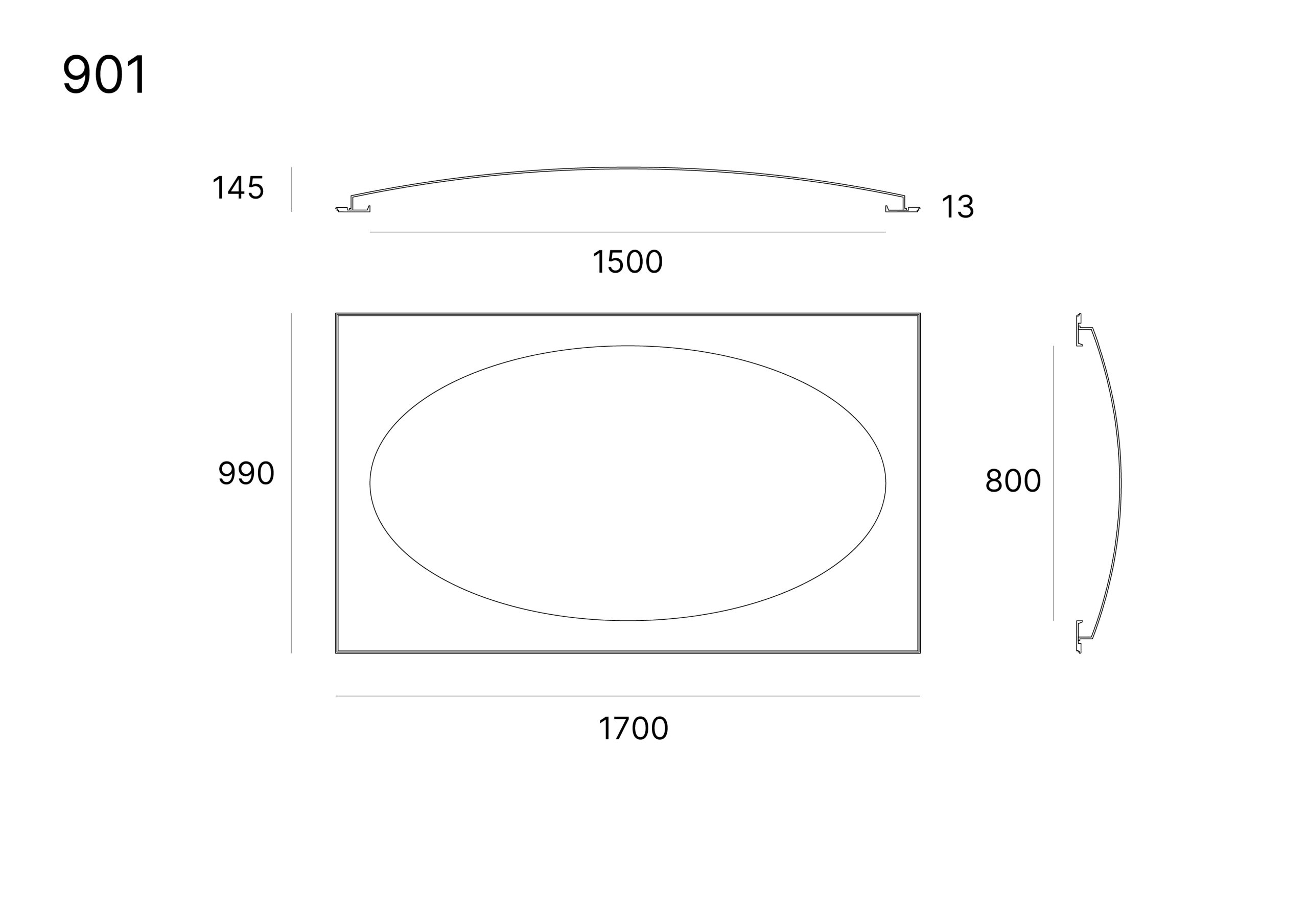 Coupole encastrée Lisse Ovale – 1500×800